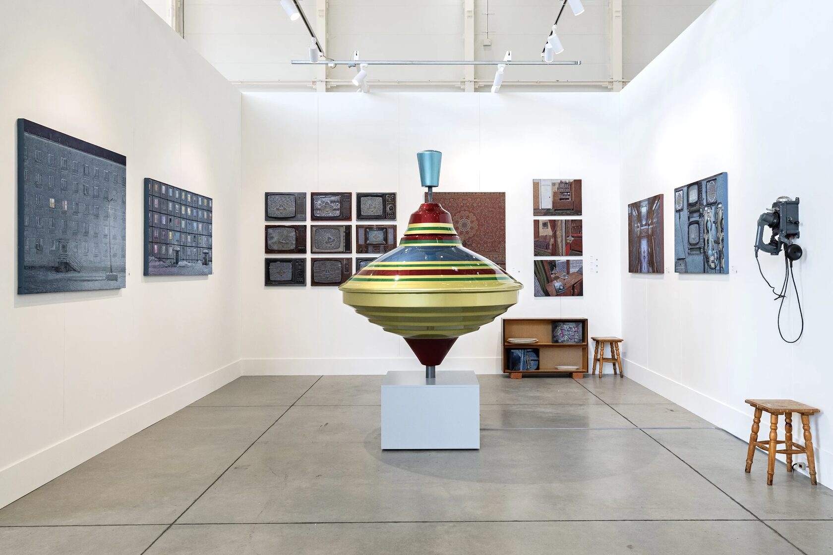 — Юла была очень популярна. Ее подолгу рассматривали и дети, и взрослые — этот образ всем знаком. Я приносила на стенд маленькую юлу-«крошку» и учила детей ее раскручивать, а взрослые делились своими детскими историями. Наш стенд получился очень теплым. Помимо большой юлы, там была представлена серия картин «Бесконечно Светлое», где в советских интерьерах и северных домах я спрятала маленькую юлу.